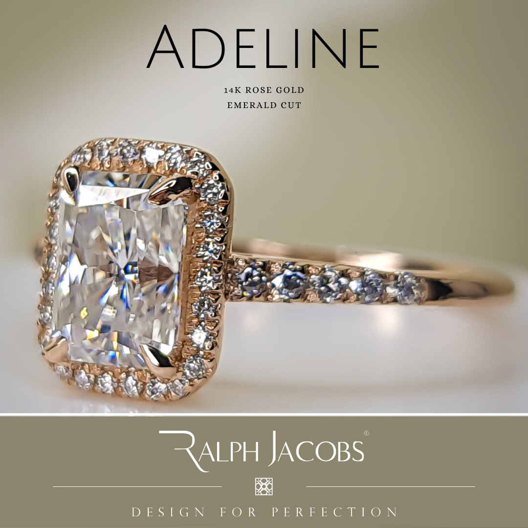 This piece features a halo of twenty-six 0.05-carat round brilliant cut lab-grown diamonds encircling the center stone, collectively weighing a total of 1.3 carats.